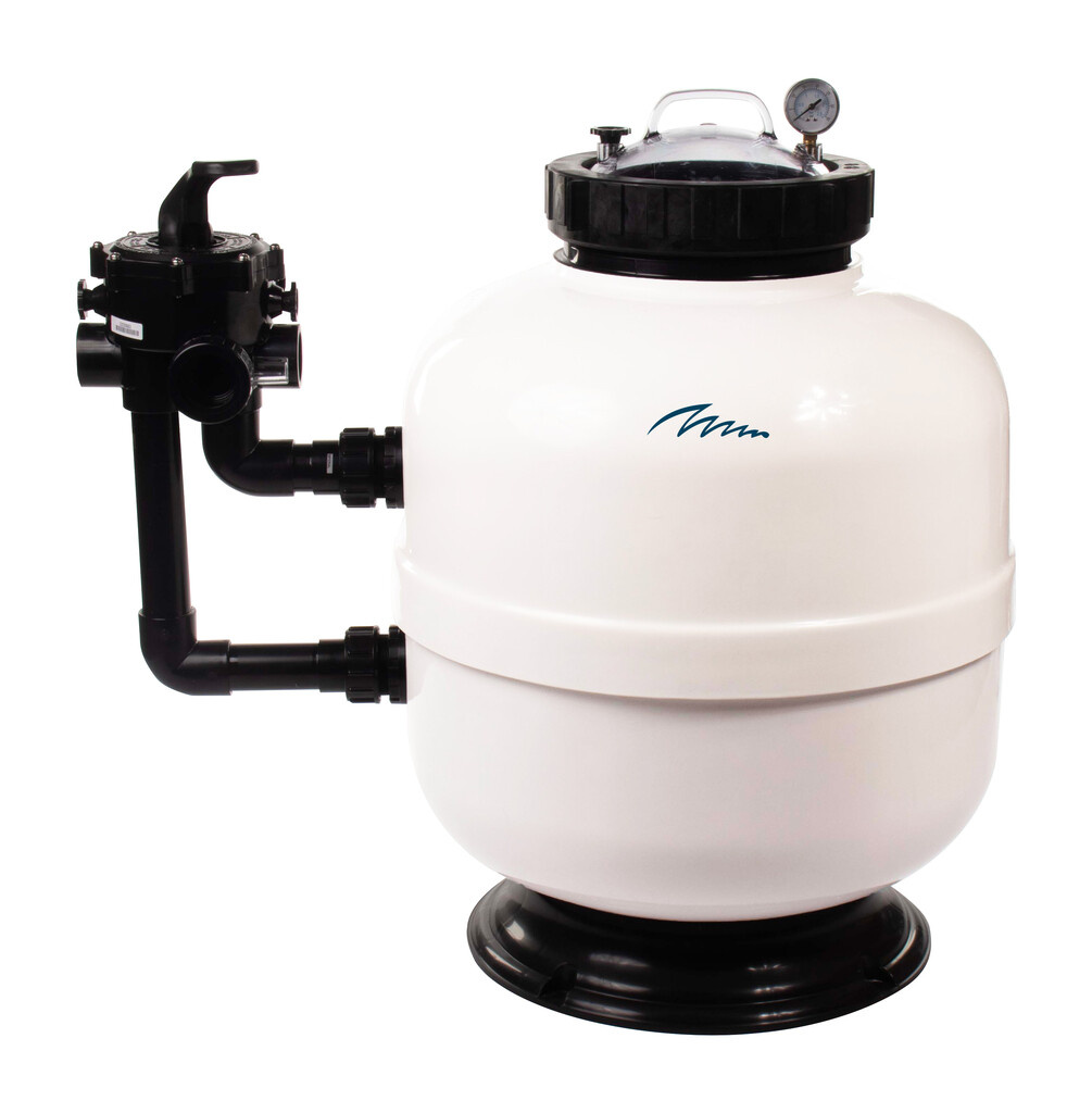 De filtertank is extra verstevigd op alle kritieke punten. Wij hebben een filterdeksel van commerciële kwaliteit gebruikt met verdeelarmen in visgraatverband en daaraan een industrieklasse leegloopstop toegevoegd. De Waterco meerwegklep met zijn typische ellebogen vervolledigt deze filter die met trots de naam Deluxe draagt.