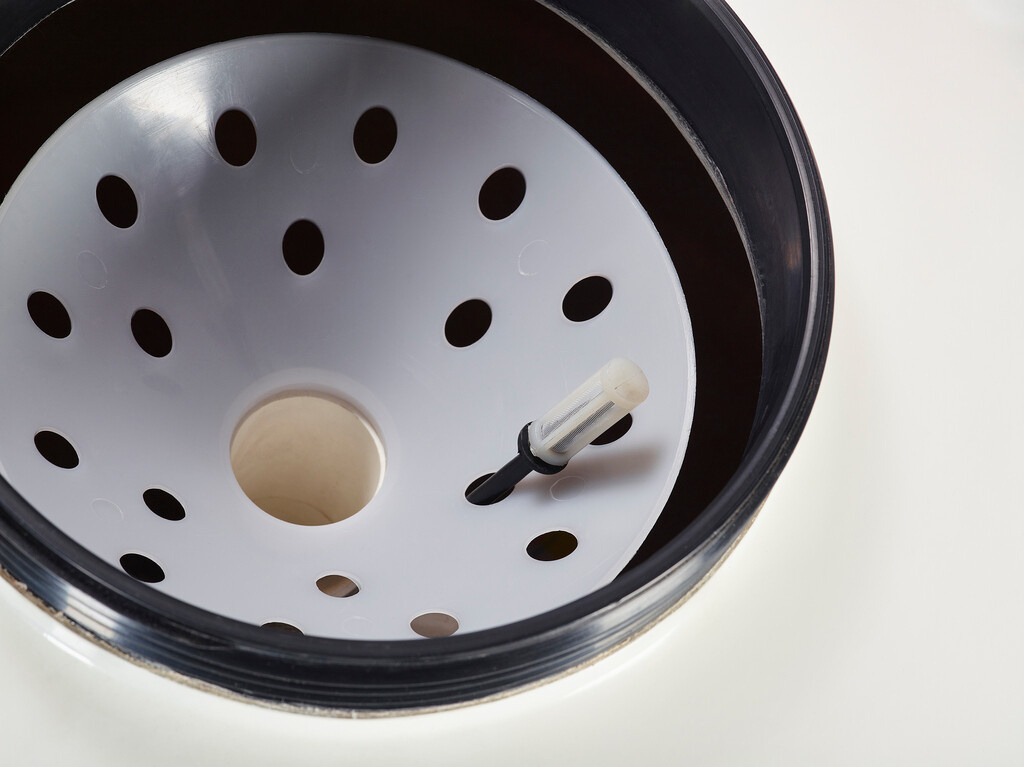 - De dubbele leegloopstop onderin biedt de mogelijkheid om alleen het water of het water en het filtermedium tegelijk af te laten.